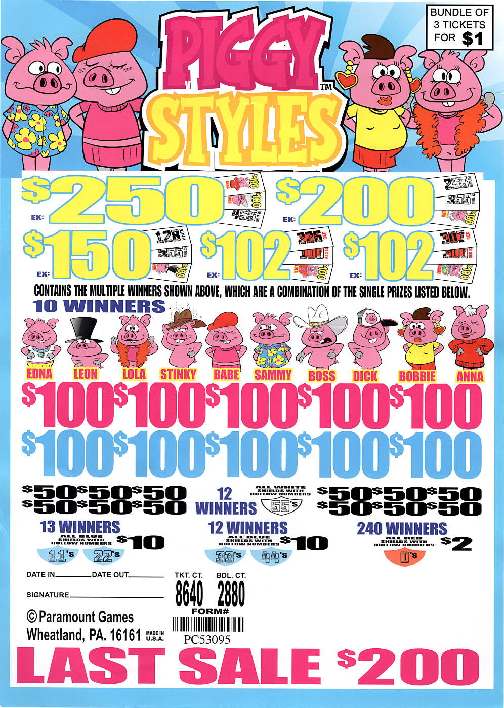 Piggy Styles Last Sale $200